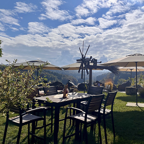 Die Sonnenstunden im Leben genießen unsere Gäste auf unserer mit Glas überdachten Sonnenterrasse mit Blick in den Süden. Dort können sie in aller Ruhe Kraft tanken, während sie den Ausblick auf die malerische Landschaft genießen.