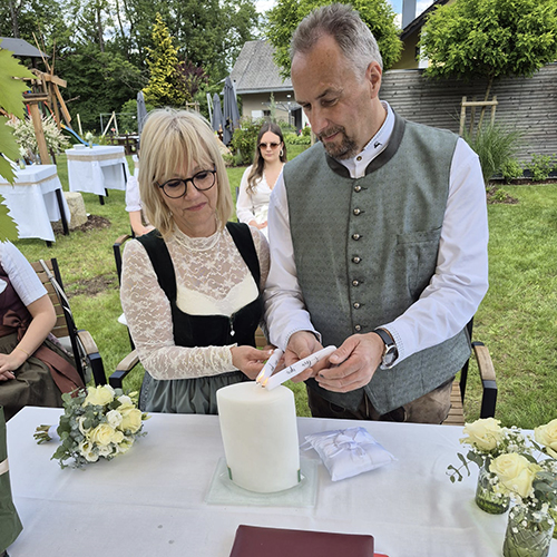 Im hinteren Bereich unseres Wiesenplatzerl entsteht für Sie eine einladende Hochzeitslocation, in der Sie sich auch standesamtlich trauen lassen können. Wir haben mit Silvia sogar eine eigene Standesbeamtin im Haus, die Ihnen bei Ihrer Trauung zur Seite stehen kann.